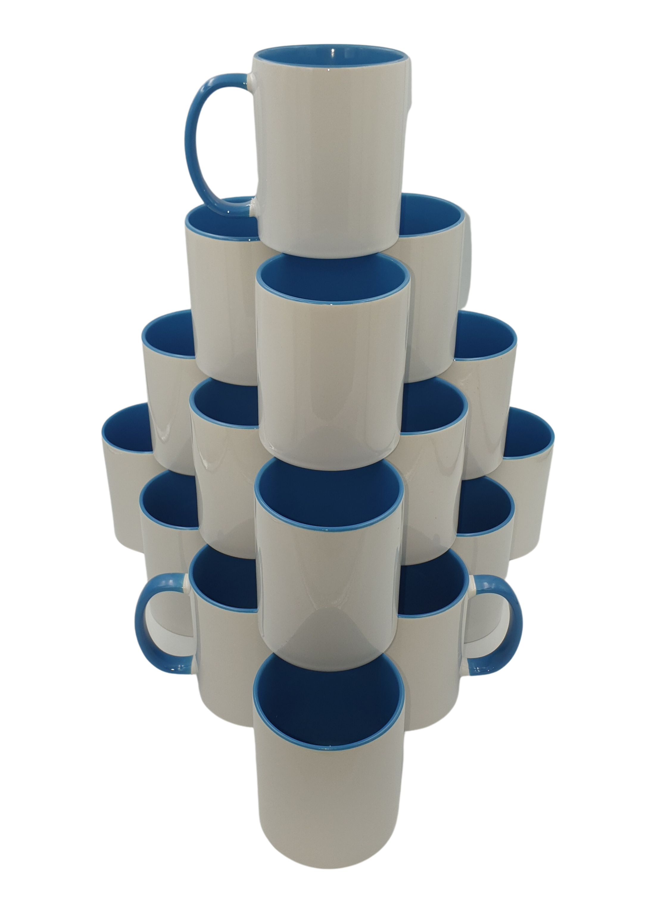 Kartonos kiszerelésű szublimációs kerámia bögre színes a belseje és füle.