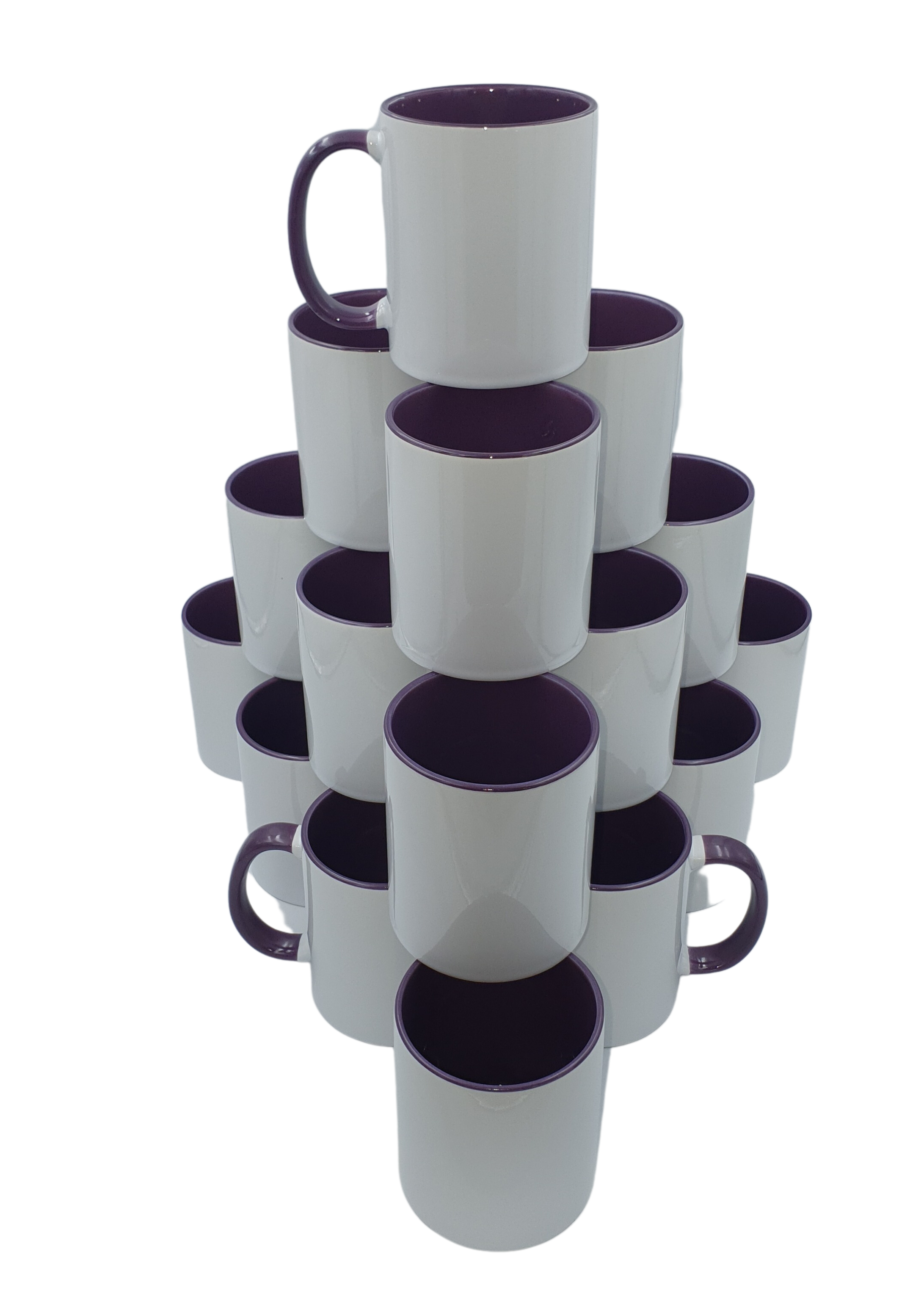 Kartonos kiszerelésű szublimációs kerámia bögre színes a belseje és füle.