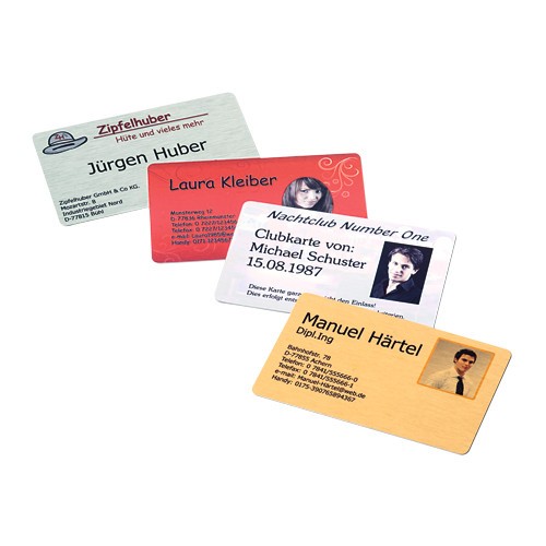 Egy oldalán nyomtatható, kerekített sarkú névjegykártya.
