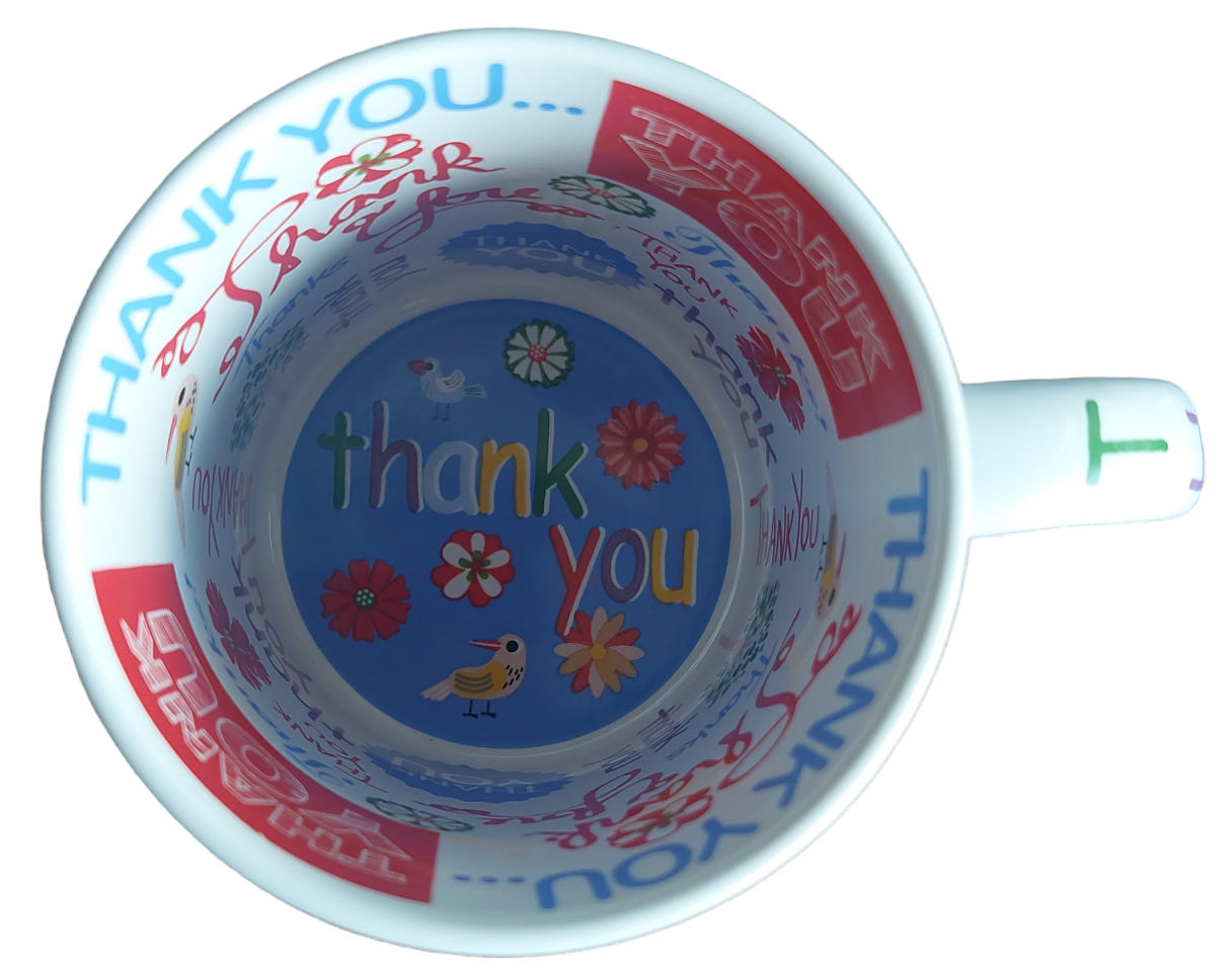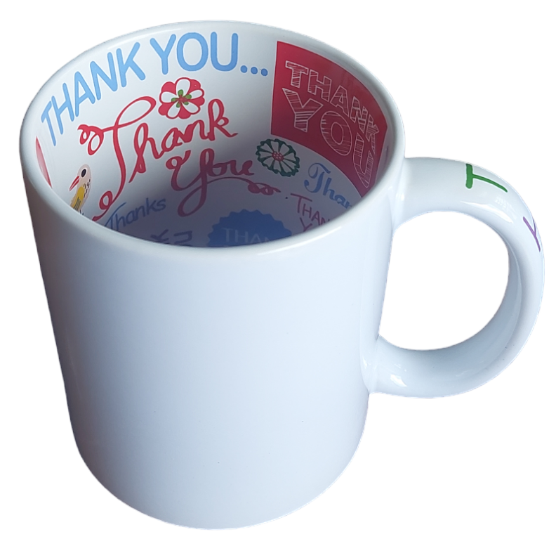 Belül és a fülén nyomtatott szublimációs bögre Thank You feliratokkal