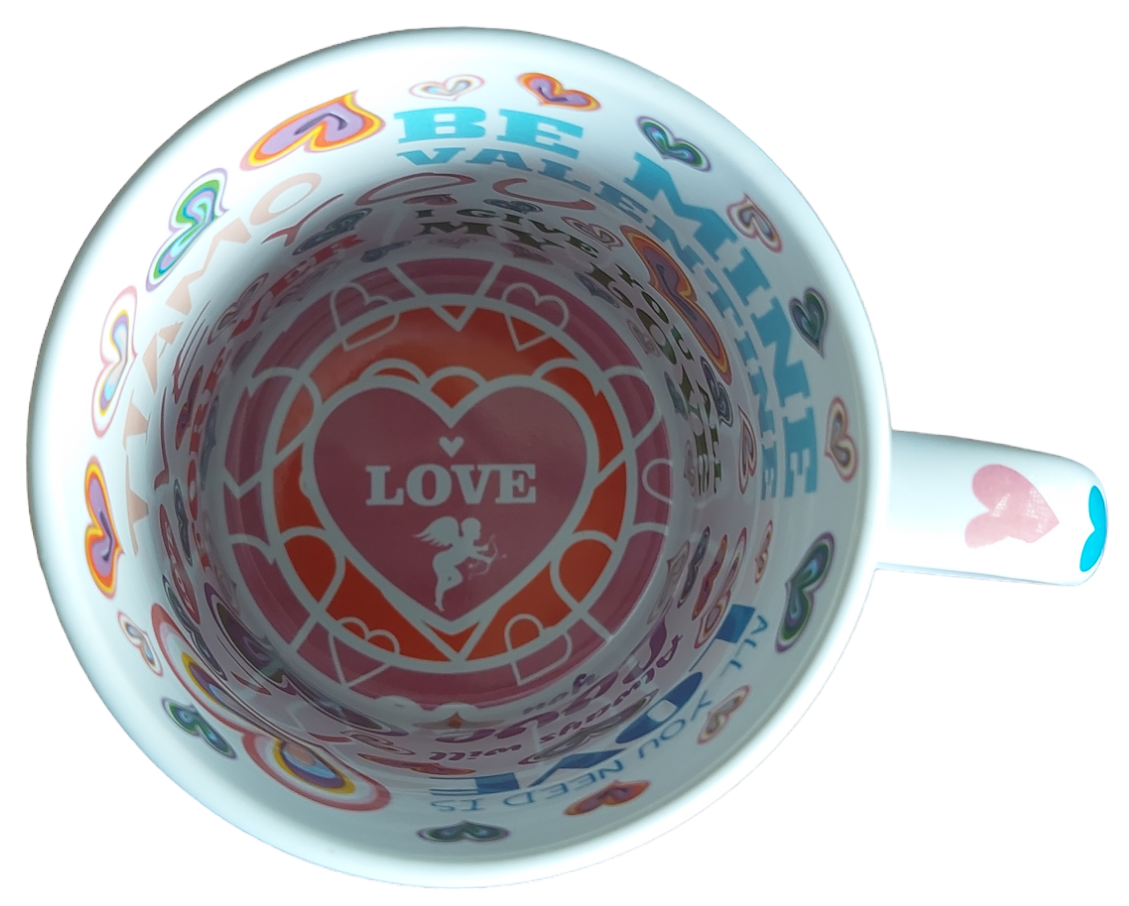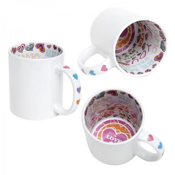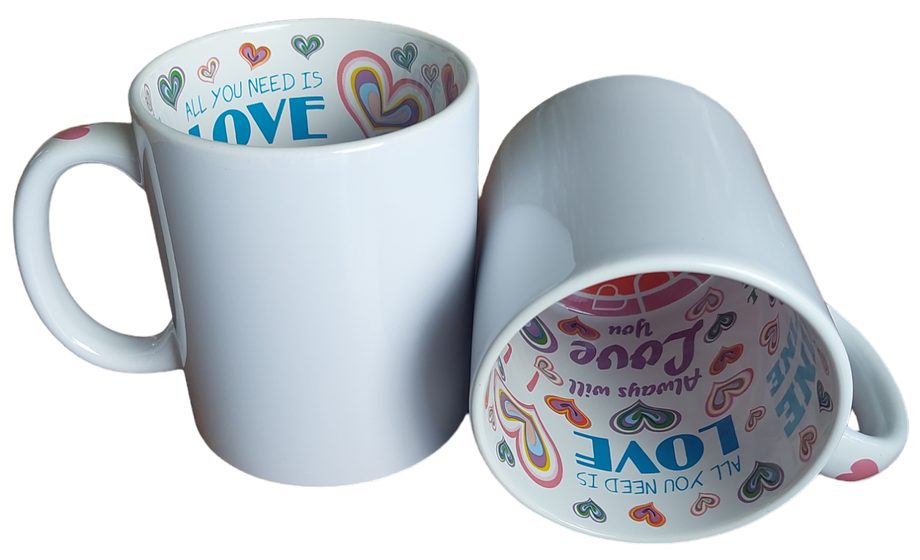 Belül nyomtatott szublimációs bögre: I Love You felirattal és mintás füllel.