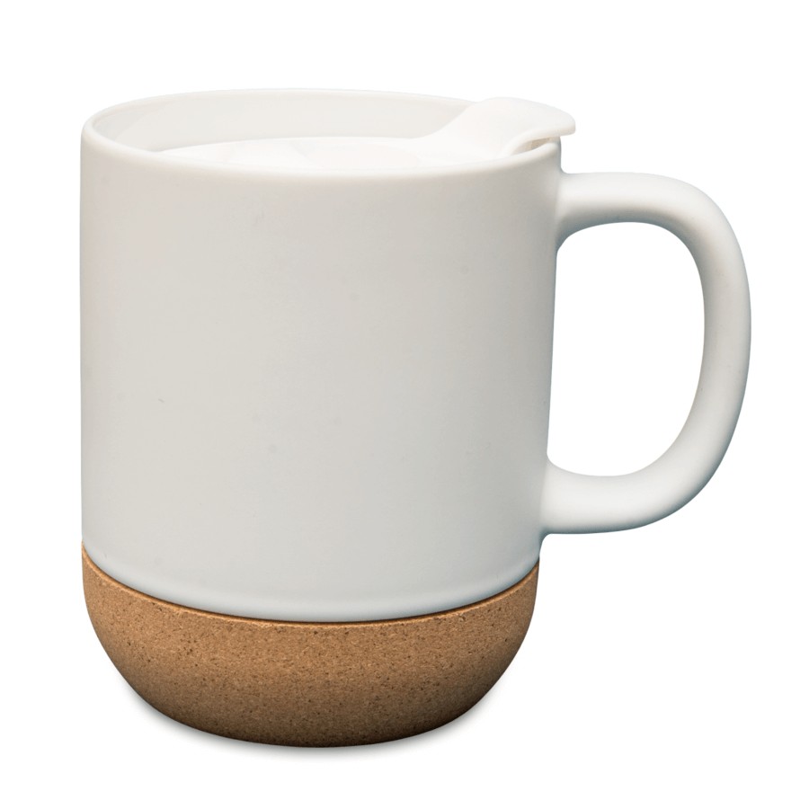 Bögre kerámia 11 oz. Műanyag fedéllel – Fehér