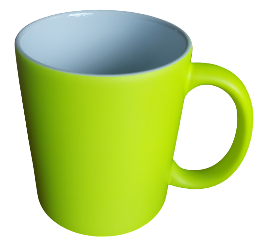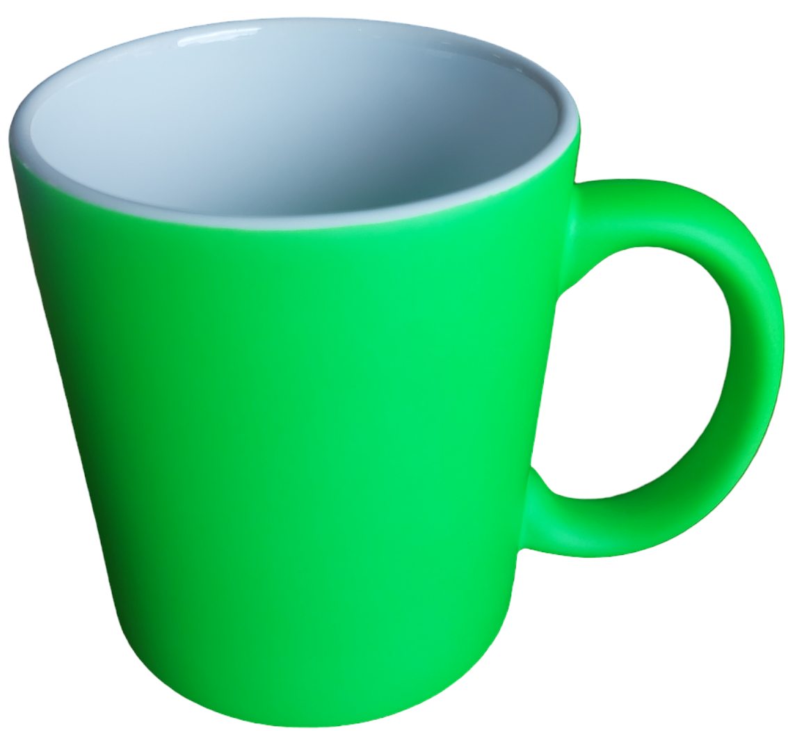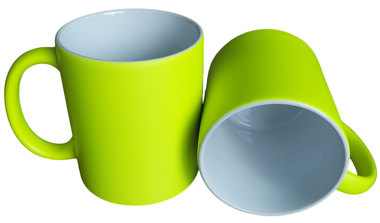 Kiváló minőségű kerámia szublimálható bögre, kívül színes neon felülettel.