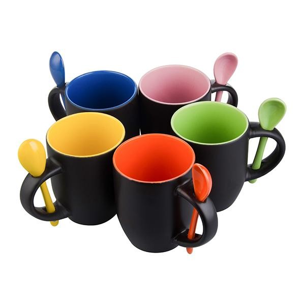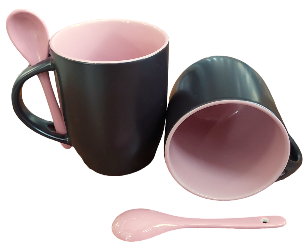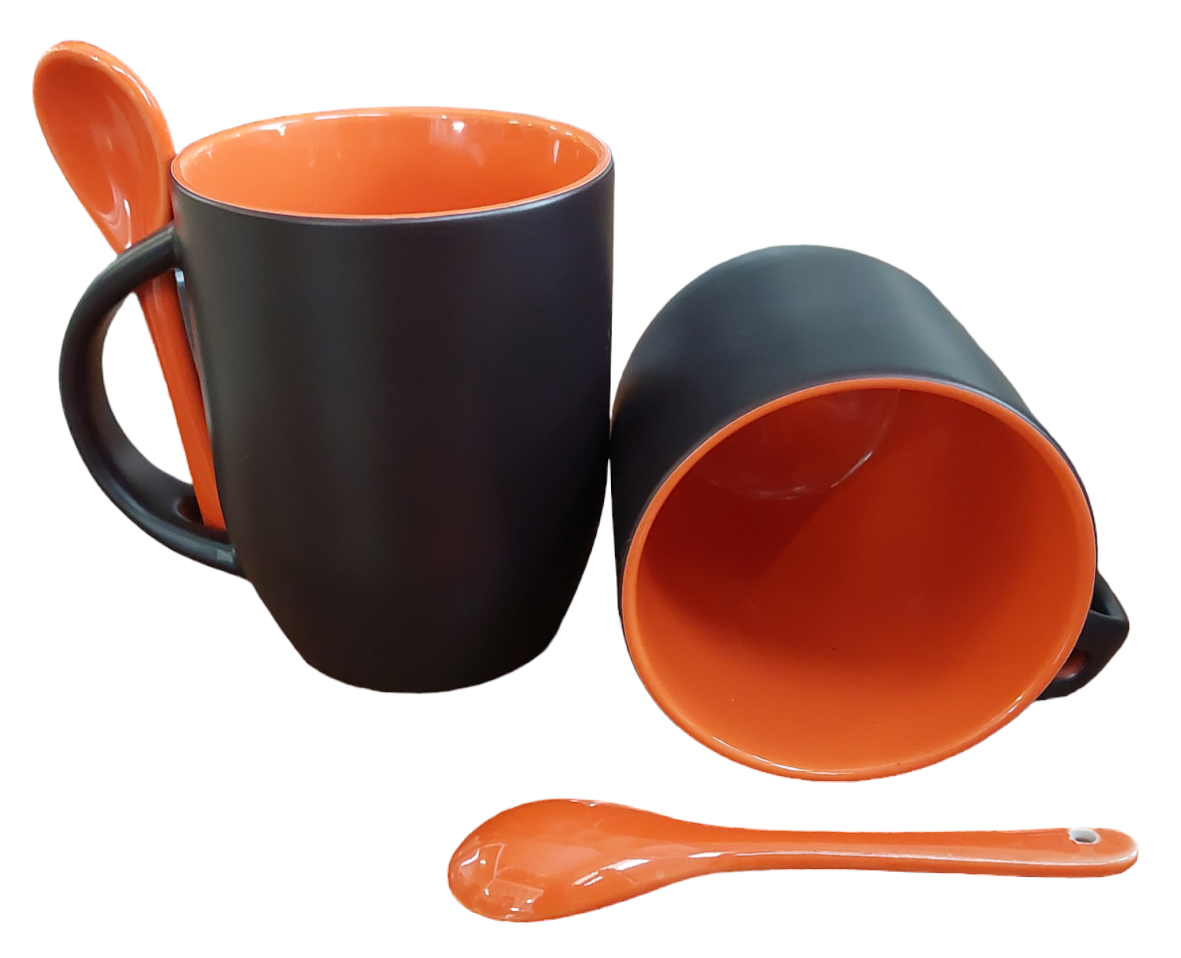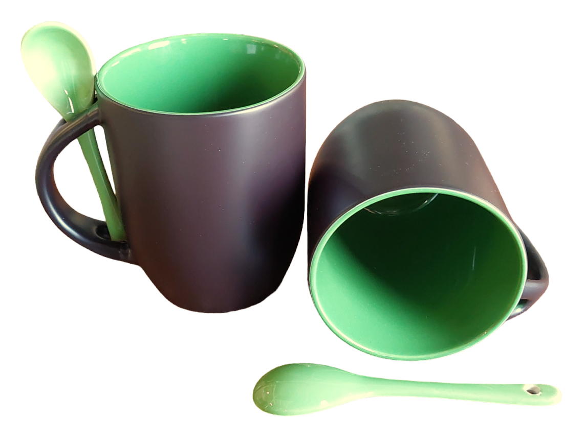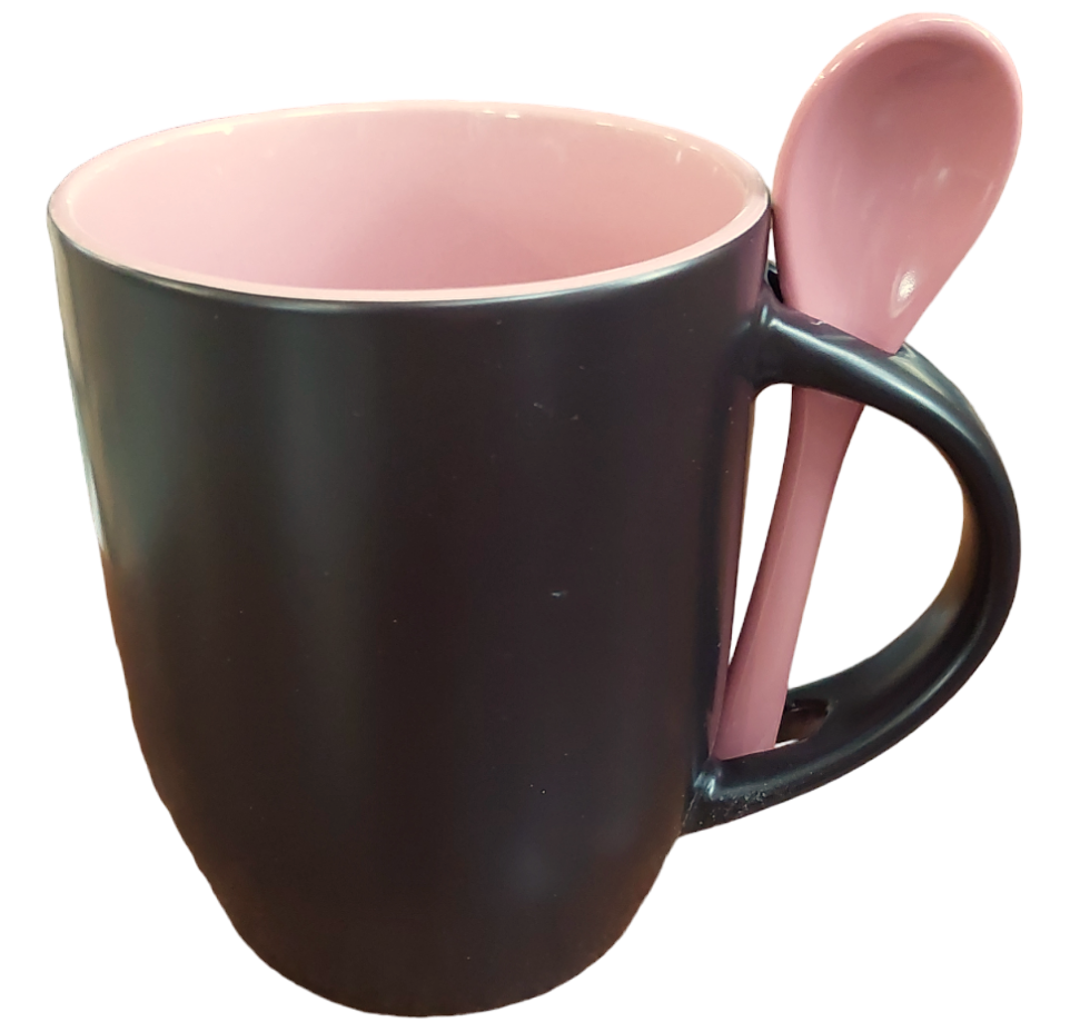 Bögre Színváltós fekete MATT külső – színes belsővel és kanállal