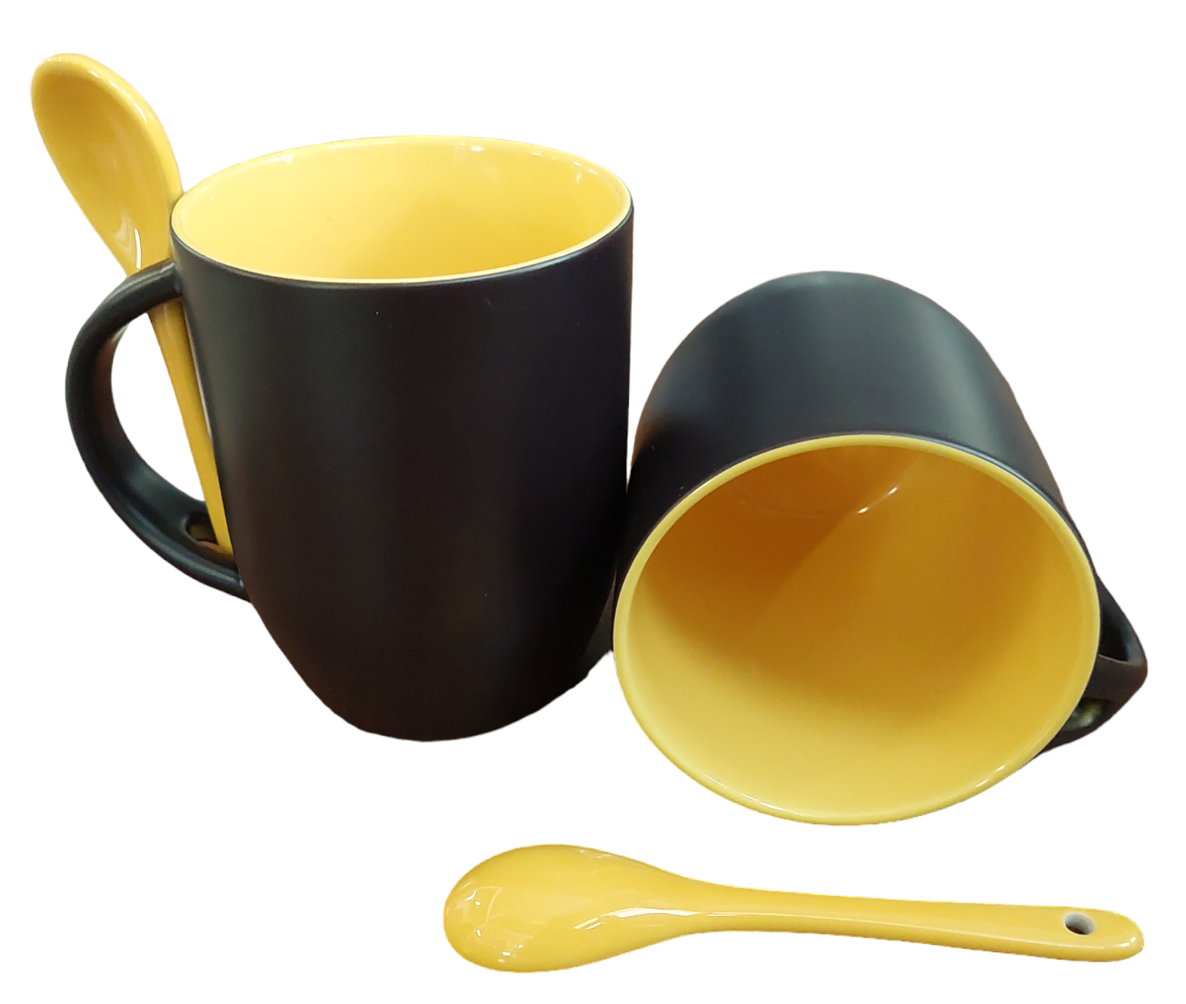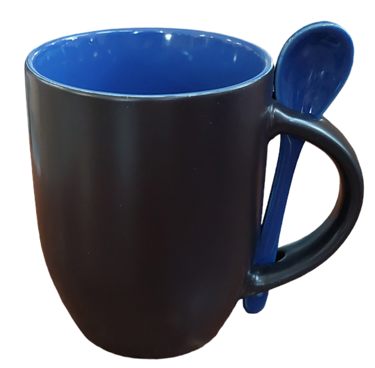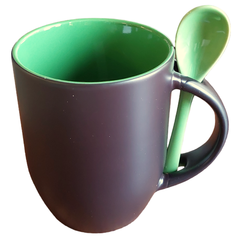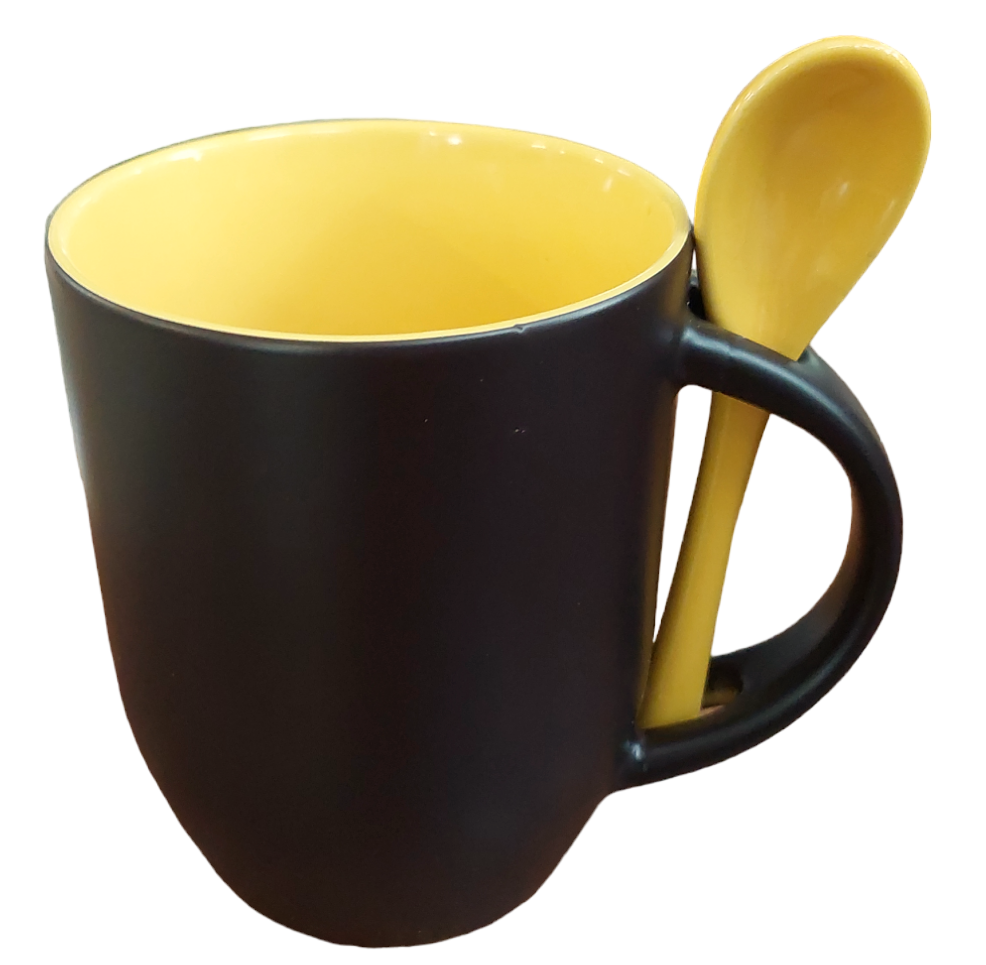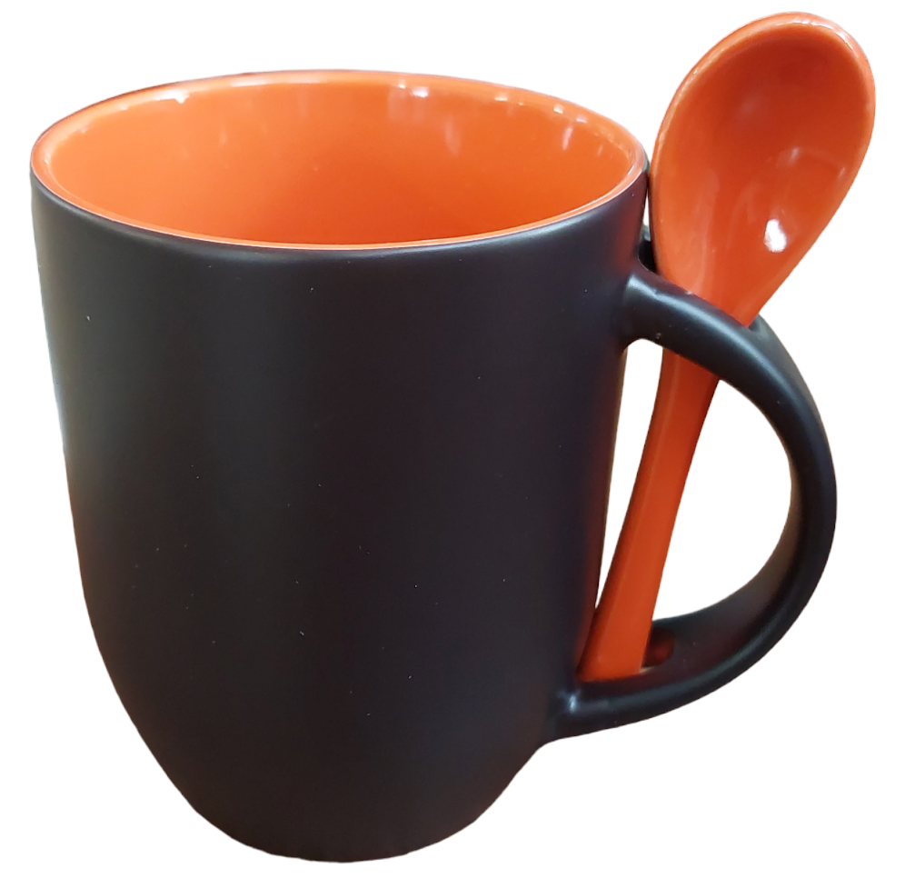 Bögre Színváltós fekete MATT külső – színes belsővel és kanállal