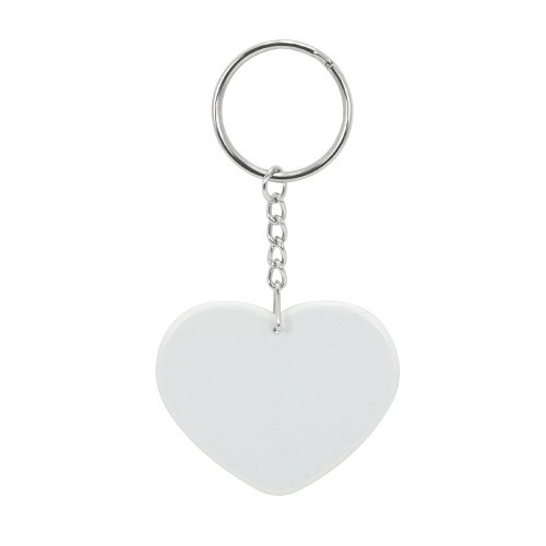 Fehér, műanyagból készült szív alakú kulcstartó.
