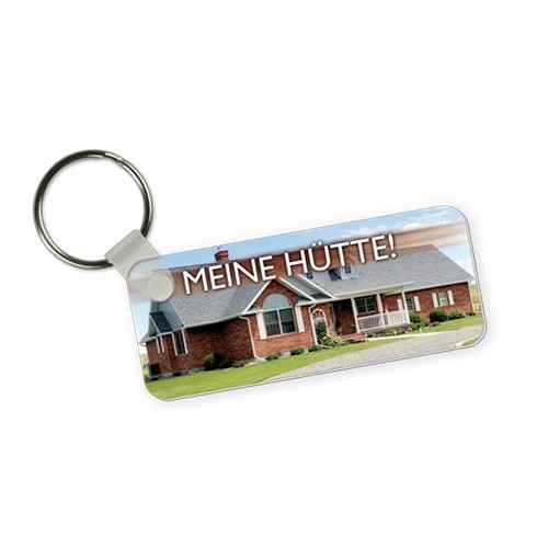Fehér színű, műanyag kulcstartó téglalap alakban.