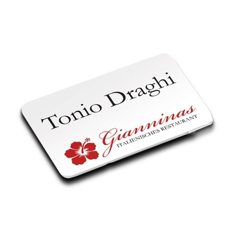 Egy oldalán nyomtatható műanyag névtábla. Téglalap, széles kivitel.