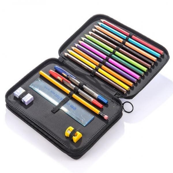 Tolltartó tartalma: színes ceruzák, filctollak, toll, ceruza, vonalzó, hegyező, radír