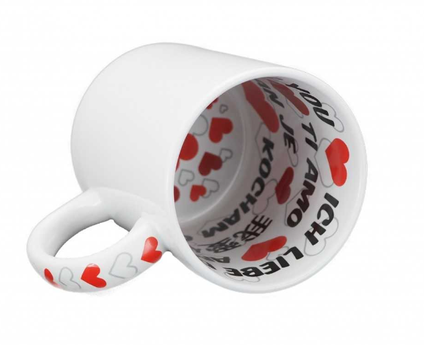 Bögre fehér / Belül nyomtatott – Piros I love you új minával