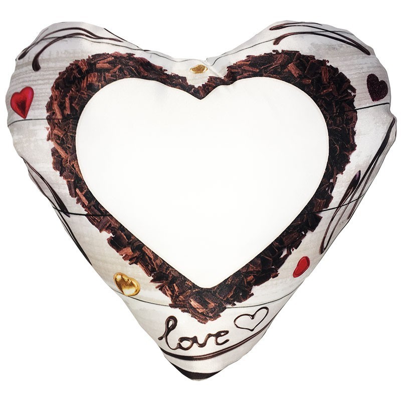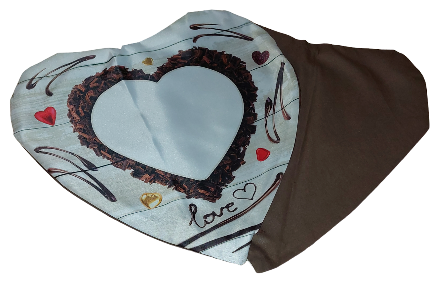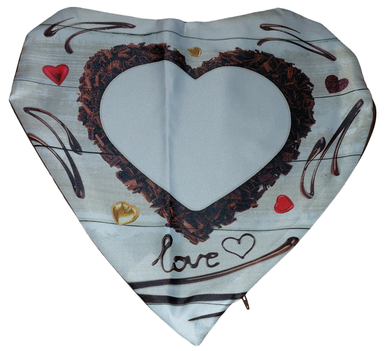 Párnahuzat , szív alakú, barna színű, mintás. A keretezett rész szublimálható.